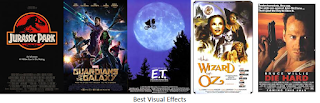 Best Visual Effects: Jurassic Park, Guardians of the Galaxy, E.T. the Extra-Terrestrial, The Wizard of Oz, Die Hard